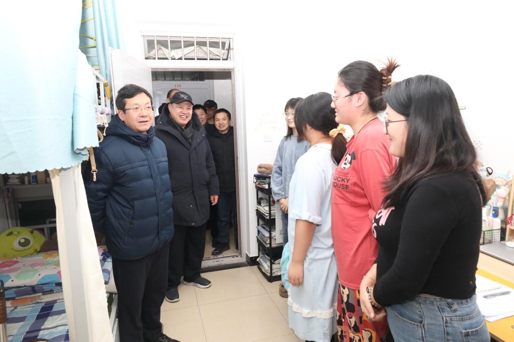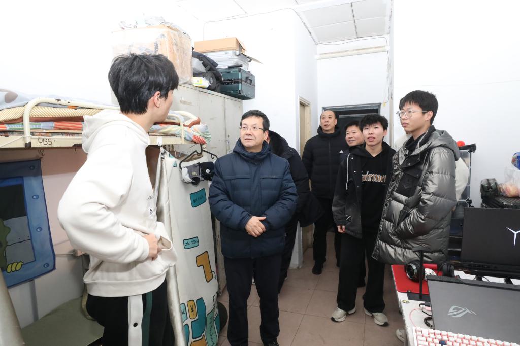 朱勇一行来到学生公寓,看望慰问青年学生,给广大青年学子送去新年问候和美好祝福。每到一处,朱勇都认真检查公寓的供暖情况,详细询问学生在元旦假期的学习和生活状况;叮嘱学生处和后勤与国有资产管理处等相关部门全力做好供暖保障,及时了解掌握青年学生的学习生活需要,为青年学生在校度过祥和愉快的学习时光做出积极贡献。同时,他还要求相关部门进一步压紧压实工作责任,落实落细工作举措,坚决抓好校园安全稳定和后勤服务工作,营造安定和谐的校园环境。(编辑:孙艳敏 审核:王荣加)