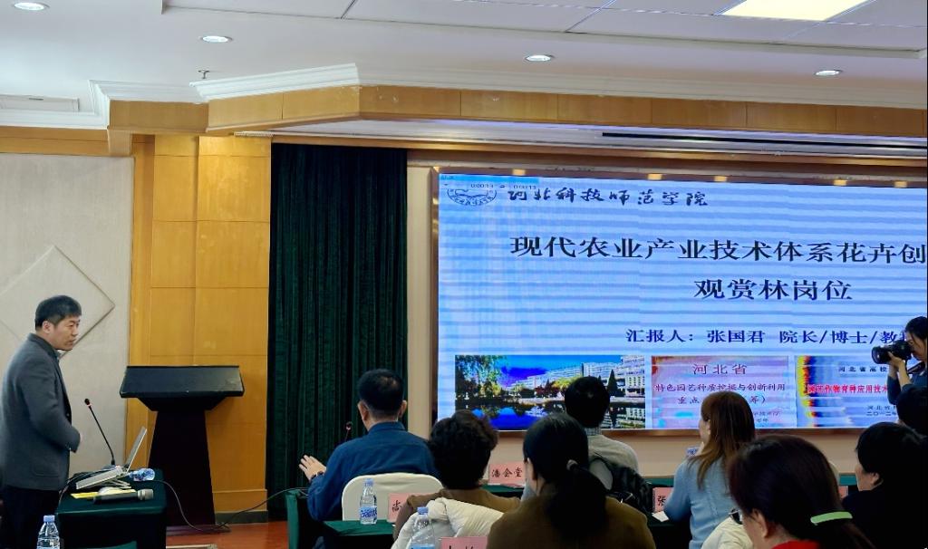 张国君教授作为河北省观赏林新品系选育岗位负责人向会议作了专题汇报,系统阐述了本岗站主研的海棠、柽柳及牡丹等系列品种的特点和优势,明确了未来四年本团队将继续围绕种质资源保护与利用、遗传育种、抗逆研究等方面对品种进行改良和优化,推动科技成果转化应用,为我省的花卉产业提供技术支撑和优质服务。