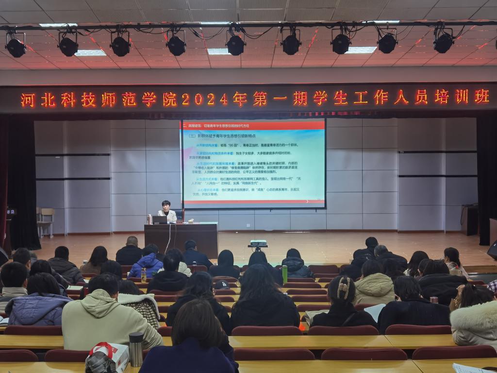 2024年3月10日,由党委学工部、学生处主办的2024年第一期学生工作人员培训班在秦皇岛校区举行。校党委常委、副校长冯瑞银出席培训班并结合学校高质量发展作专题讲座。全校辅导员(班主任)和党委学工部、学生处、团委工作人员等200余人参加了培训班。