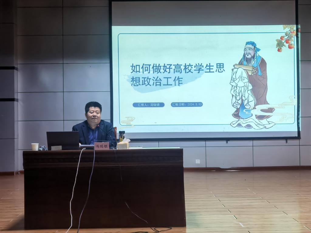 培训班上,冯瑞银就“如何做好高校学生思想政治工作”从“怎么看高校学生思想政治工作”到“怎么做好高校学生思想政治工作”两个方面进行讲解。他强调,思想政治工作是一切工作的生命线,是方向,是信念信仰,是内生动力源泉。广大辅导员(班主任)要树立大局意识和系统观念,坚持以学生为中心,不断创新工作方法和手段,努力提高工作的针对性和实效性,努力打造具有我校特色的学生思想政治工作新局面,为学生成长成才、推动我校高质量发展和社会的进步做出更大的贡献。