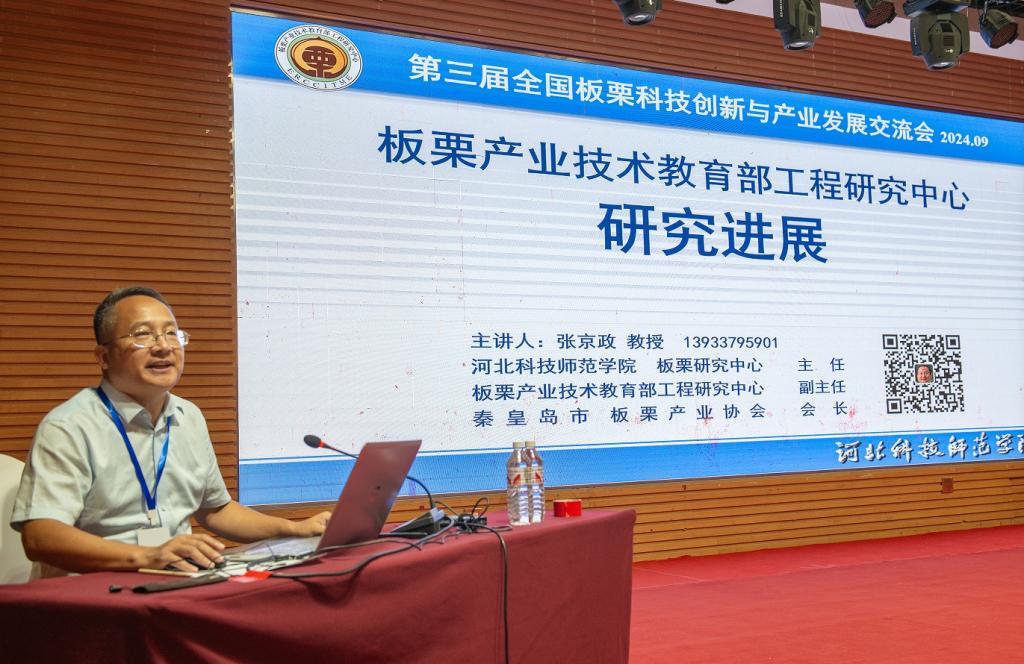 杨越冬带队参加了“第三届全国板栗科技与产业发展学术研讨会暨2024年中国经济林协会板栗分会学术年会”。会上,板栗研究中心主任张京政教授作学术报告,并对教育部板栗中心的建设情况进行了详细介绍。(编辑:孙艳敏 审核:王荣加)