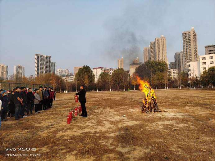 学校模拟校园火灾场景,组织灭火逃生演练。邀请消防救援工作人员进校,系统讲授初期火灾扑救、火场逃生自救及消防器材使用等知识,并指导学生及其他岗位的人员进行灭火实战演练。安全工作处工作人员、各二级学院的学生骨干、各学院实验员、大学生服务中心食堂及物业的人员共同参与演练活动。