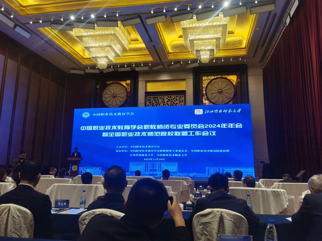 2024年11月9日至10日,中国职业技术教育学会职教师资专委会年会暨全国职业技术师范院校联盟工作会议在江西科技师范大学举行。我校党委书记孙政、副校长杨越冬应邀出席会议,学校党办校办、研究生部、职业教育研究院主要负责同志参加会议。