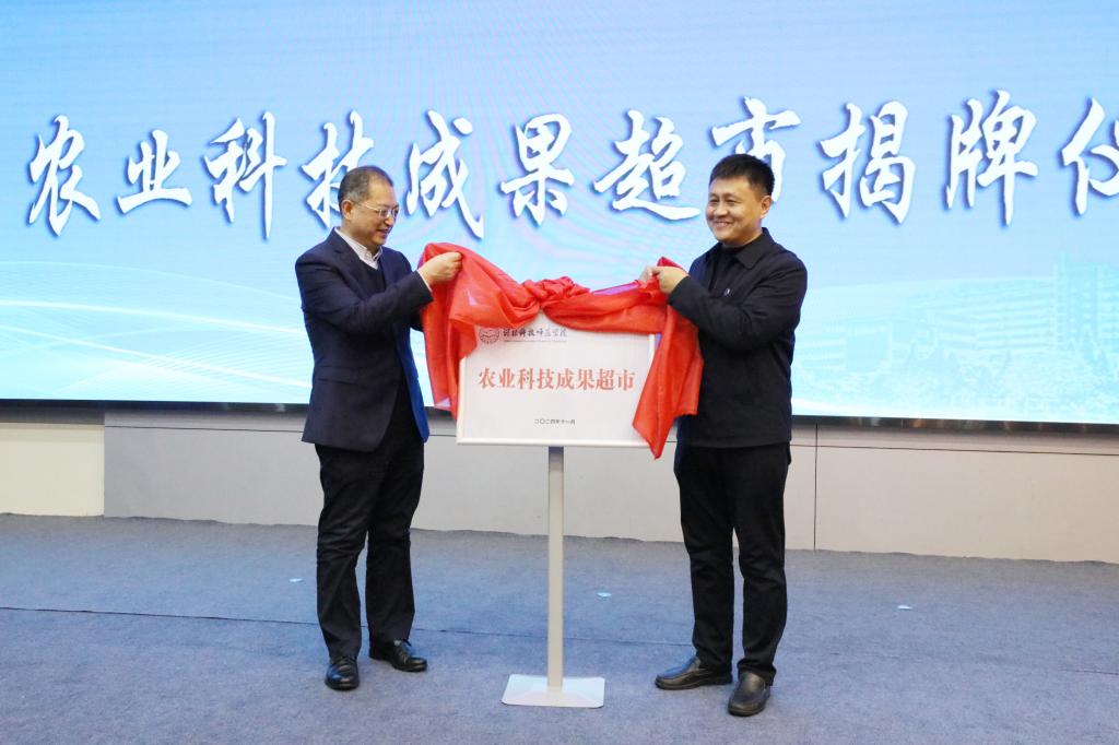 丁伟和郭旭涛共同为我校“农业科技成果超市”揭牌