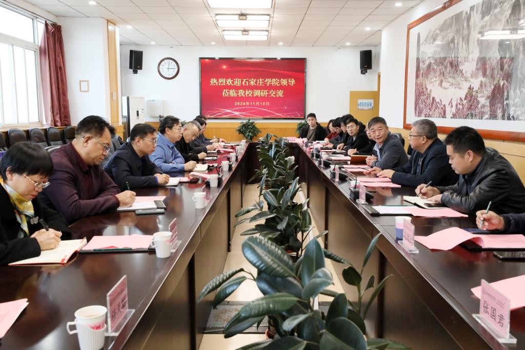 冯宝强对学校的热情接待和高度重视表示感谢。他简要回顾了石家庄学院与我校的研究生联合培养历程,交流了石家庄学院概况和近一年来学科建设发展成绩和硕士学位授权点申请建设情况;希望能与我校进一步加强合作,扩大研究生联合培养规模和涉及领域,在研究生导师培养、学科建设和科研项目联合申报等方面,实现发展共赢。