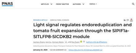 近日,我校园艺科技学院青年教师张姣姣博士在《PNAS》(中科院1区Top期刊,IF5=10.779)发表了题为“Light signal regulates endoreduplication and tomato fruit expansion through the SlPIF1a-SlTLFP8-SlCDKB2 module”的最新研究成果,揭示了光信号通过特定分子模块调控番茄果实细胞核内复制,从而控制果实膨大的机制,并阐明了设施栽培中光照不均影响果实大小一致性的分子机制。张姣姣博士于2023年引进金沙67783检测路线,现为我校黄瓜创新团队主要成员,主要研究方向为黄瓜遗传育种与分子生物学。(编辑:孙艳敏 审核:王荣加)