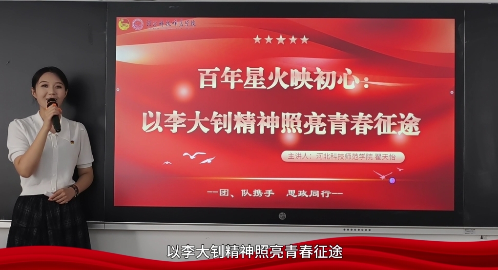 近日,由河北团省委主办的“团、队携手·思政同行”微团课大赛中,我校“红色薪火”大学生理论宣讲团成员翟天怡作品《百年星火映初心:以李大钊精神照亮青春征途》荣获三等奖。