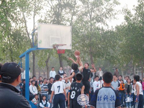 图为我校篮球联赛首场比赛现场