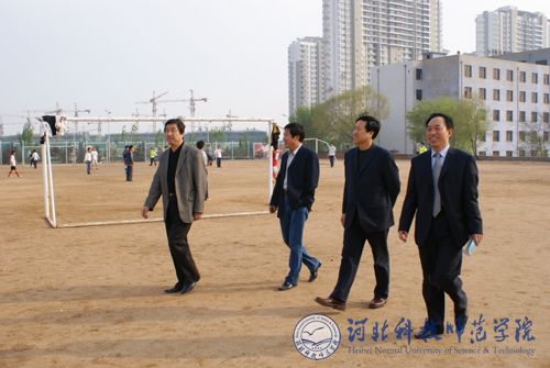 图为党委副书记、院长汤生玲同志在考察我校欧美学院体育场建设情况