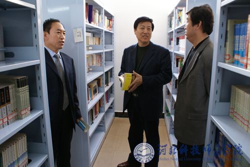 图为党委副书记、院长汤生玲同志在我校欧美学院图书馆考察