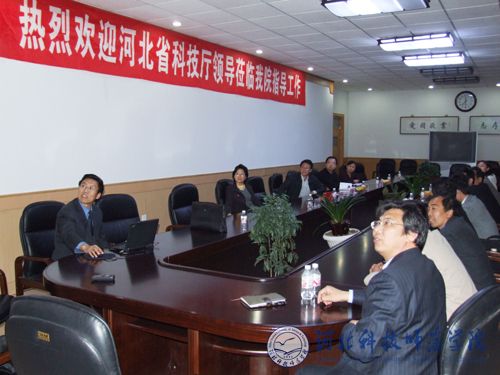 图为省科技厅领导在听取我校科研工作汇报