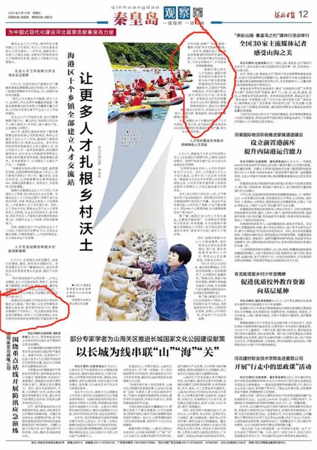 2024年6月12日,《 河北日报》第三版以《让更多人才扎根乡村沃土》为题,报道了海港区杜庄镇在财经学院帮扶下构建乡村旅游新格局的工作经验。
