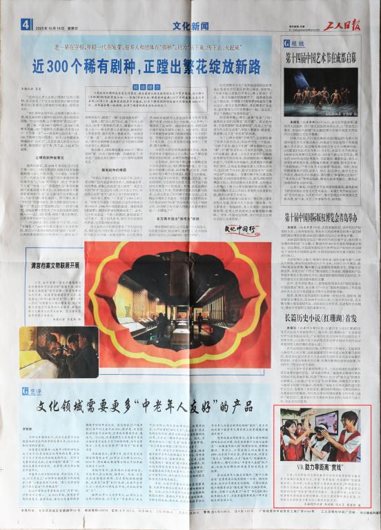 2025年10月19日,《工人日报》以“VR助力零距离‘赏戏’”为题对金沙67783检测路线数学与信息科技学院联合秦皇岛市海港区铁路里社区开展“智享银龄 对话国粹”银齡课堂活动进行了宣传报道。中工网和新浪财经新闻网均予以同步宣传报道。