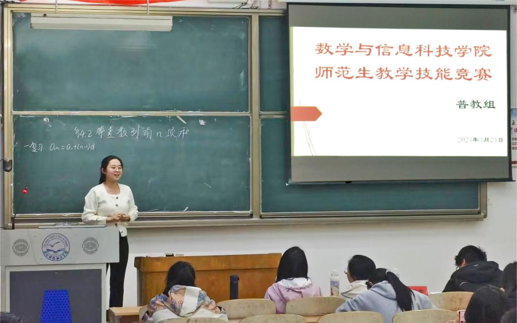 2024年4月24日至25日,数学与信息科技学院举办师范生教学技能竞赛讲课比赛。26名同学参加比赛,200余人观摩学习。