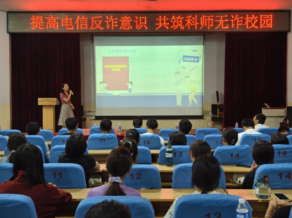 2024年9月5日,化学工程学院在昌黎校区学术报告厅举办了以“提高电信防诈意识,共建科师无诈校园”为主题的讲座。学院学生工作负责人,全体辅导员、新生班主任和2024级所有新生参加了活动。