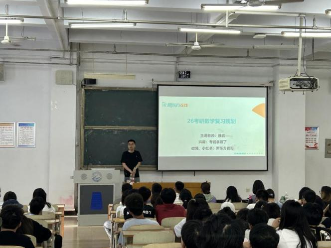 2024年9月19日,由学校招生就业处主办、数学与信息科技学院承办,以“研海扬帆,筑梦前行”为主题的划考研规指导讲座在B104召开。本次讲座诚邀新东方考研数学名师聂岩担任主讲人,各学院21级、22级200余名同学参加了讲座。