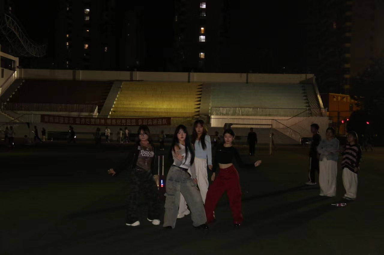 2024年9月27日晚上,财经学院艺术团在运动场上开展迎新演出,全校各专业学生约100余人参与观赏。