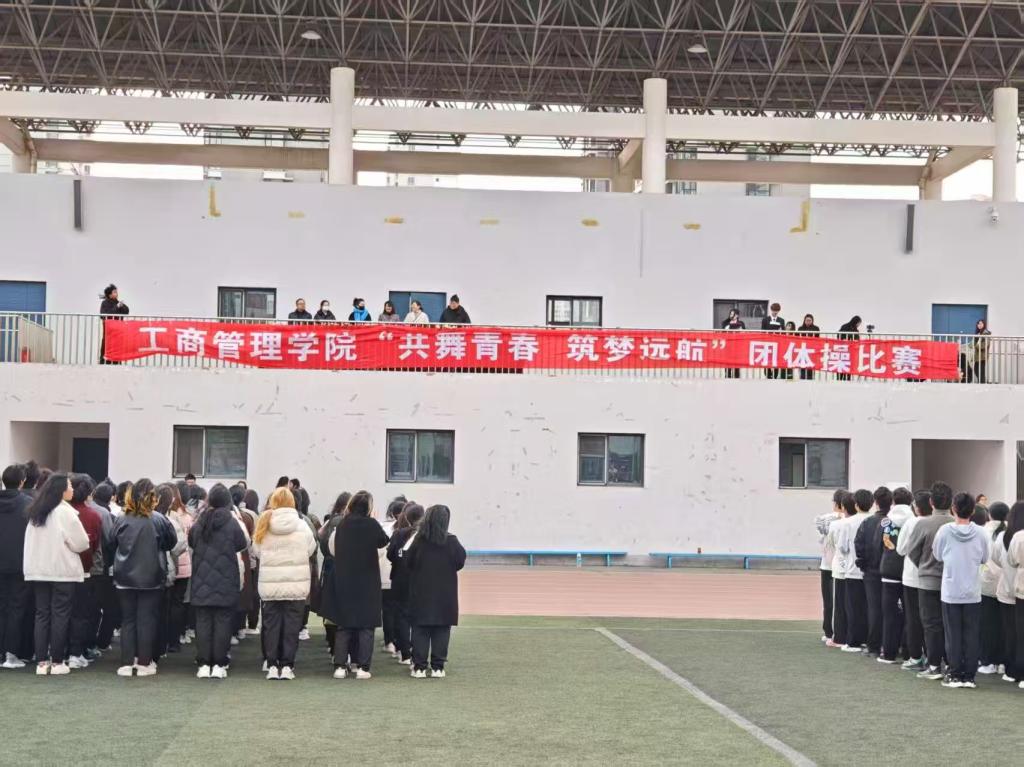 2025年3月27日,丰富校园文化生活,提升学生体质,激发学生团队精神与集体荣誉感,工商管理学院在运动场举办“共舞青春,筑梦远航”班级团体操比赛活动。新生班级300余人到场参赛,比赛评委由学院领导和老师担任。