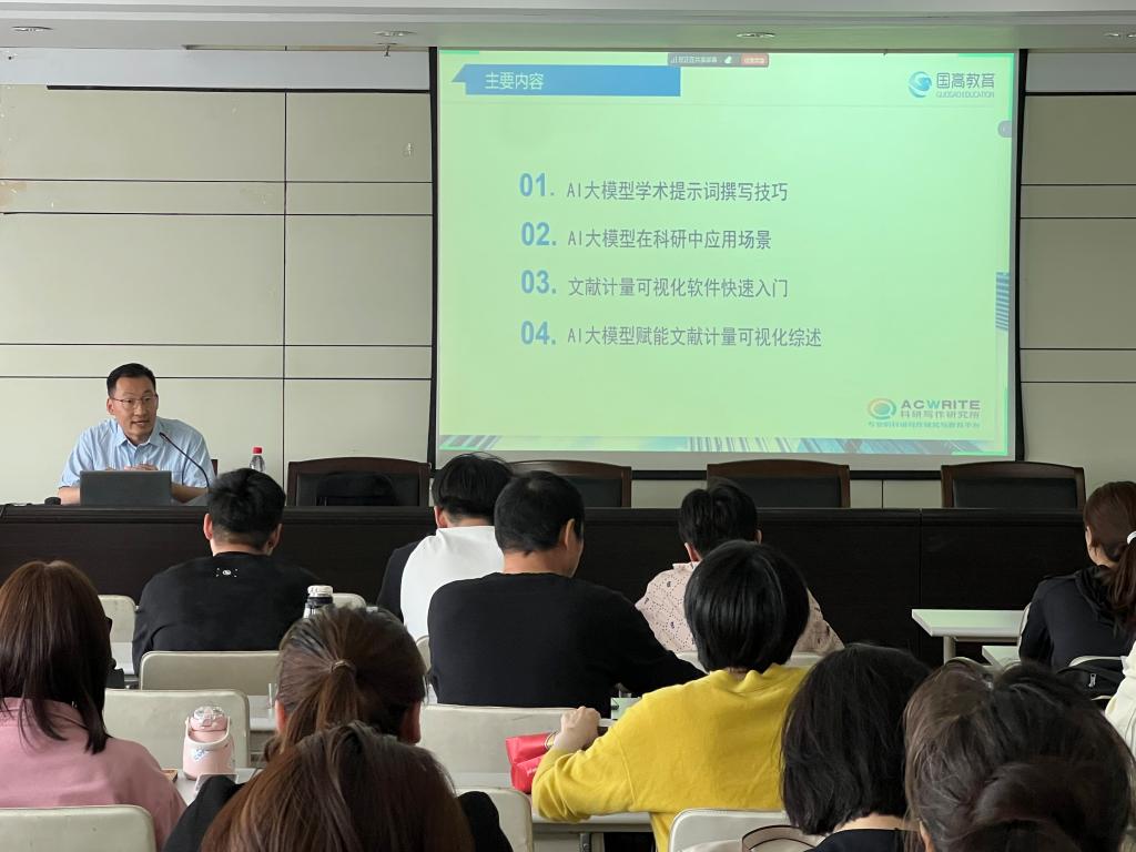讲座中,宋凯全面介绍了AI大模型的功能、作用、在科研中的应用场景;重点讲授了如何运用AI大模型辅助论文写作、提升论文写作质量,演示了运用AI大模型进行文献检索和学术论文写作的实战技巧。宋凯强调,AI大模型是辅助科学研究的重要手段,决不能用AI大模型技术代替论文写作。