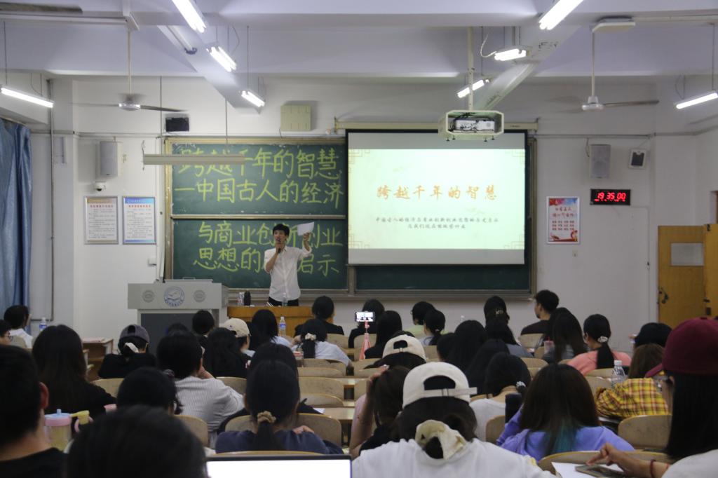 讲座采用互动的模式,活动前鼓励同学们查阅相关资料,思考自己感兴趣的方向。在讲座现场,主讲人根据同学们提出的问题进行针对性的讲解,现场互动形式不仅提高了学生的参与热情,也加深了大家的思考深度。讲座内容从历史发展的角度,系统梳理了中国古代商人和思想家的经济智慧,重点分析了明清的经营哲学,并探讨了这些传统智慧对现代商业创新与创业实践的启示意义。通过一系列生动的历史案例,向同学们展示了古人在资源调配、市场规律认知以及商业伦理构建等方面展现出的卓越智慧,为经济管理专业的学子们提供了宝贵的思想启迪。