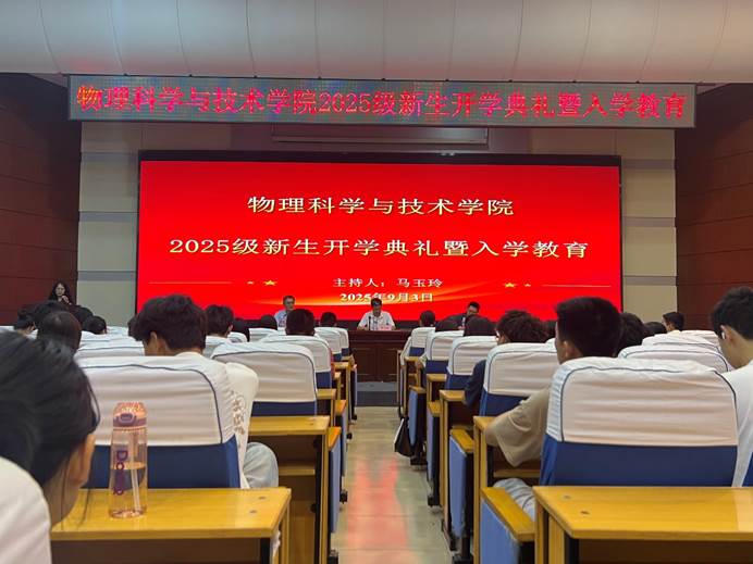 2025年9月3日,物理科学与技术学院2025级新生开学典礼在学术交流中心举行。学院领导班子成员、教师代表、新生班主任及全体2025级新生和部分学生家长齐聚一堂,共同见证这一重要时刻。