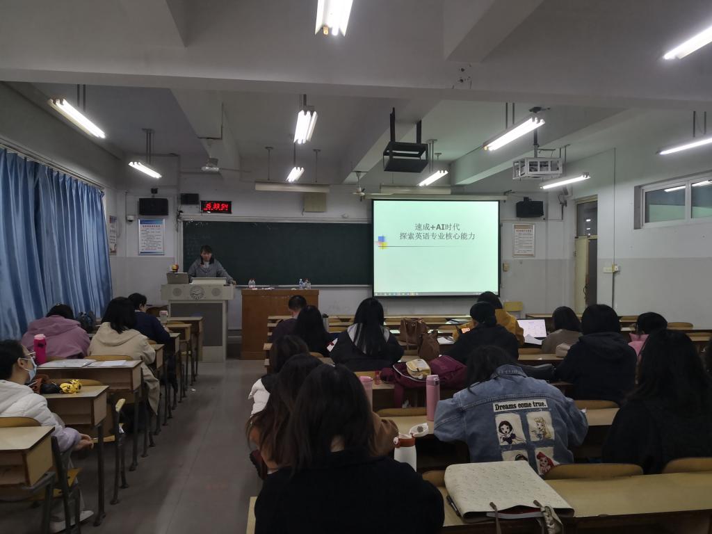 张杨老师以“速成+AI 时代探索英语专业核心能力”为主题,剖析了人工智能浪潮下英语专业学生核心能力的培养路径。她强调,在信息爆炸与技术迭代的时代,批判性思维能力是英语专业学生的“立身之本”。教师需通过问题驱动式教学、学术辩论、多源信息对比分析等活动,引导学生突破“信息茧房”,学会理性思辨、自主探究。此外,她还结合 AI 工具的应用场景,介绍了“人机协同”的能力培养模式——让学生既掌握AI辅助语言学习、文本分析的技能,又保持人类独有的情感洞察、文化共情能力,从而在未来职场中具备不可替代的竞争力。