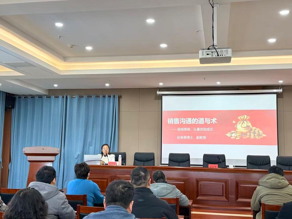 本次培训特邀工商管理学院市场营销专业副教授、对外经济贸易大学企业管理博士、秦皇岛市“港城英才”赵春霞博士担任主讲。培训过程中,赵春霞博士紧扣企业发展实际,围绕“销售沟通的道与术:‘超越推销,从喜欢到成交’”这一主题,结合典型案例与实用技巧,从销售实战、客户关系沟通与维护等多个角度展开系统讲解。