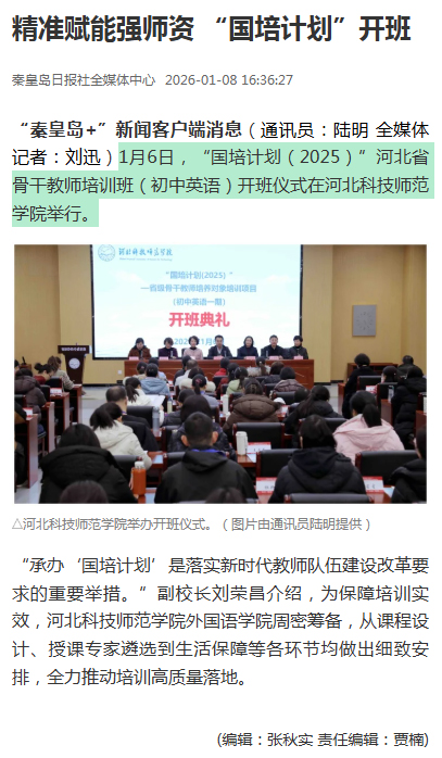 01.082026秦皇岛新闻网:精准赋能强师资 “国培计划”开班【外国语学院】